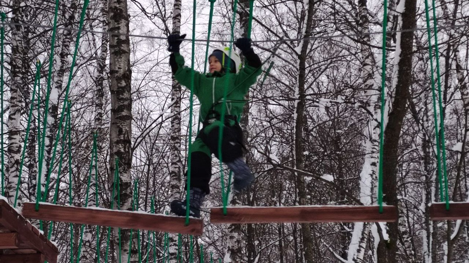На территории санатория в поселке Крутушка, расположенным по соседству с глэмпингом «Лес и река», открылся новый веревочный парк.